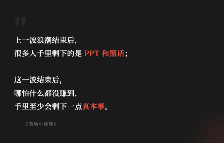 上一波浪潮结束后,很多人手里剩下的是PPT和黑话;这一波结束后,哪怕什么都没赚到,手里至少会剩下一点真本事。