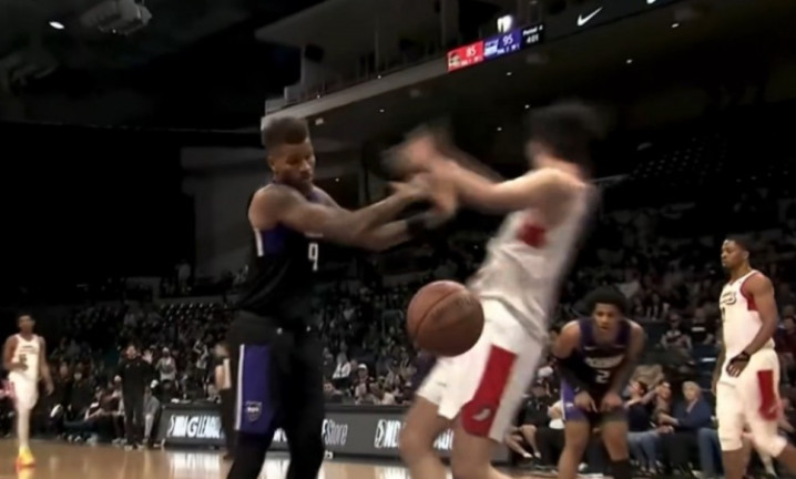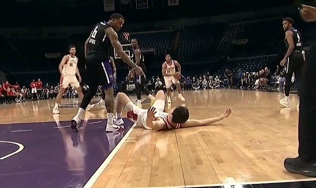 丹尼斯推倒扣篮后的杨瀚森吃T