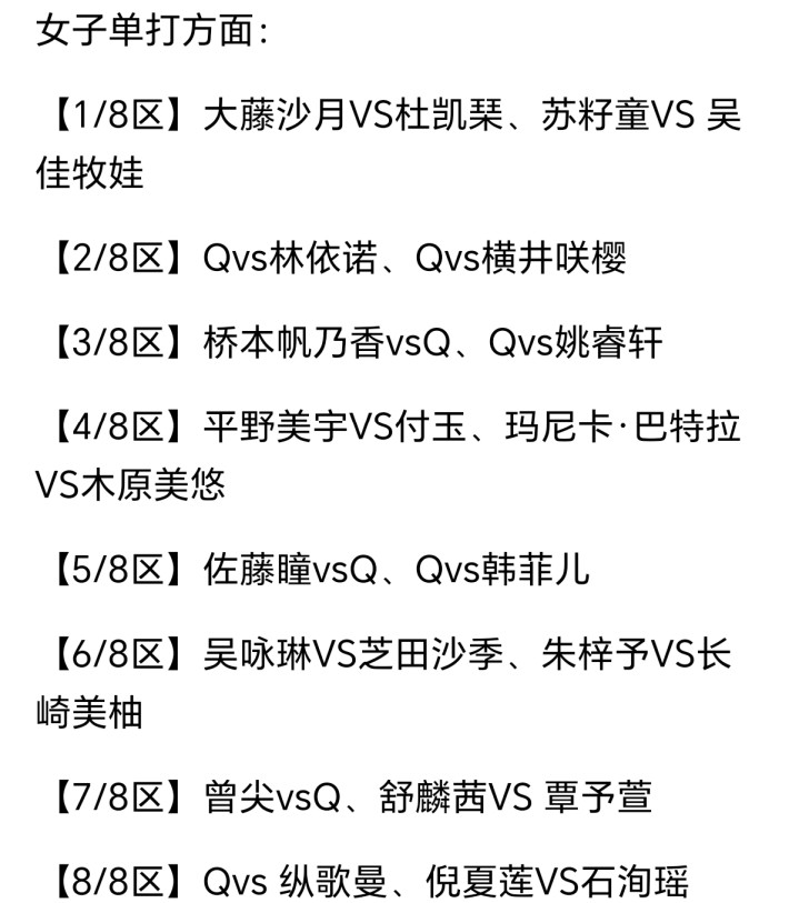 女子方面,名单同样亮眼。虽然仍以少数几位经验较为丰富的选手为主,但年轻力量如石洵瑶、覃予萱、纵歌曼等已开始逐步承载国乒未来的希望。纵歌曼和覃予萱这一对双打搭档迎战芝田沙季/高森爱央等劲敌,体现出教练组愿意大胆尝试新组合,从而拓宽战术储备的决心。国乒女子单打抽签同样不乏看点,大藤沙月与杜凯琹交锋,国内新人苏籽童直面吴佳牧娃,真正的“无冕之争”蠢蠢欲动。
